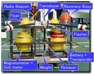 Beacon)から電波が送信され、またフラッシャー(Flasher)が光る。こうしてOBEMの浮上位置を調査船に知らせている。